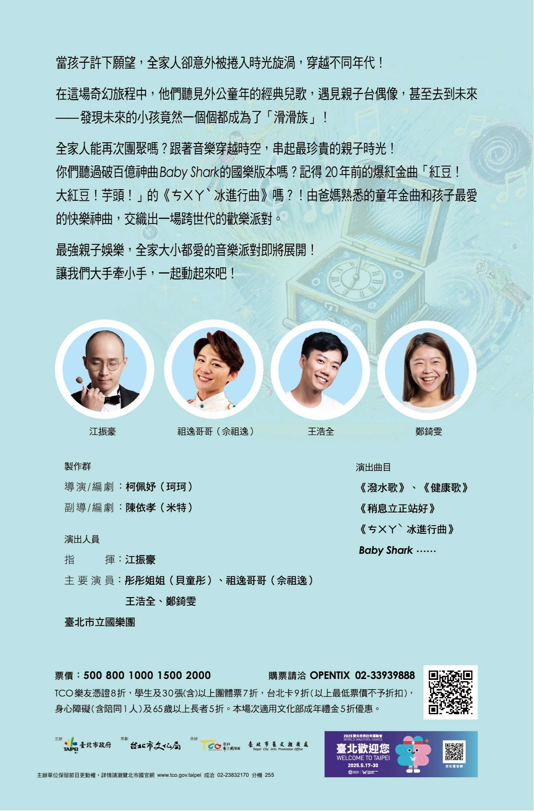 特別邀請彤彤姐姐、祖逸哥哥等小朋友喜愛的哥哥姐姐們與國樂團演出,有爸媽熟悉的童年金曲和孩子最愛的快樂神曲,交織出一場跨世代的歡樂派對。