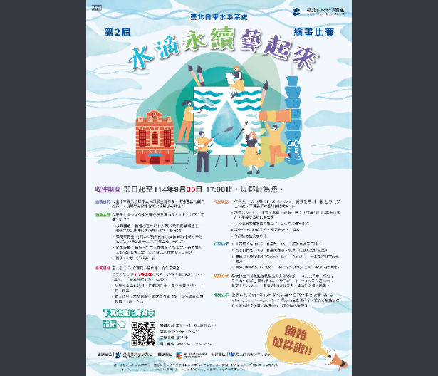 114年第2屆「水滴永續藝起來」繪畫比賽開放個人報名,收件截止日延至114年9月30日。