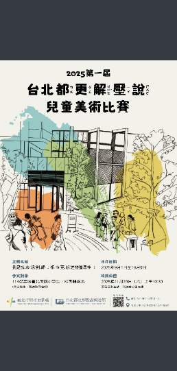 一、為鼓勵學生從小學習觀察城市、生活環境,臺北市都市更新處規劃「2025第一屆台北都更解壓說兒童美術比賽」,希望結合都市更新與社區空間的議題,讓孩子透過繪畫來表達對城市的理解與願景,期盼以孩子們的角度看到城市更多有趣的可能。