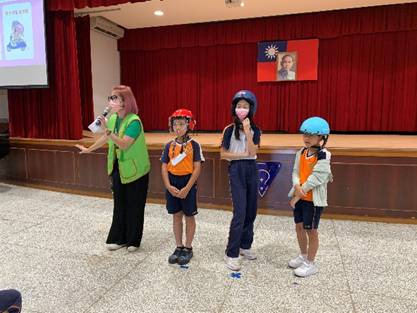 | 植物人是因為腦部受傷緣故,騎車一定要戴安全帽。 | 騎車戴安全帽、可以保護大腦。 | 學生響應活動相當熱情,也很期待換來的禮物。 |