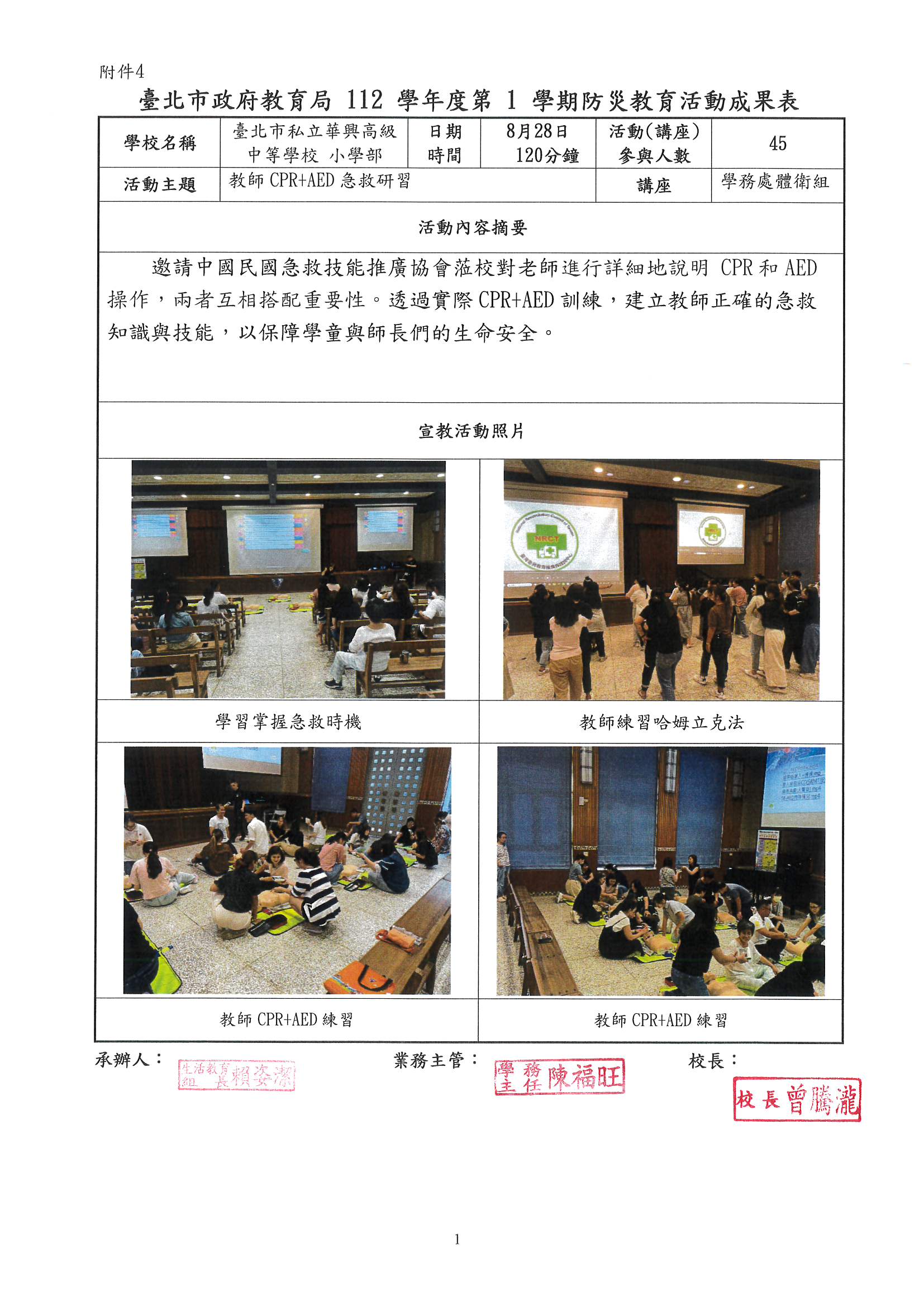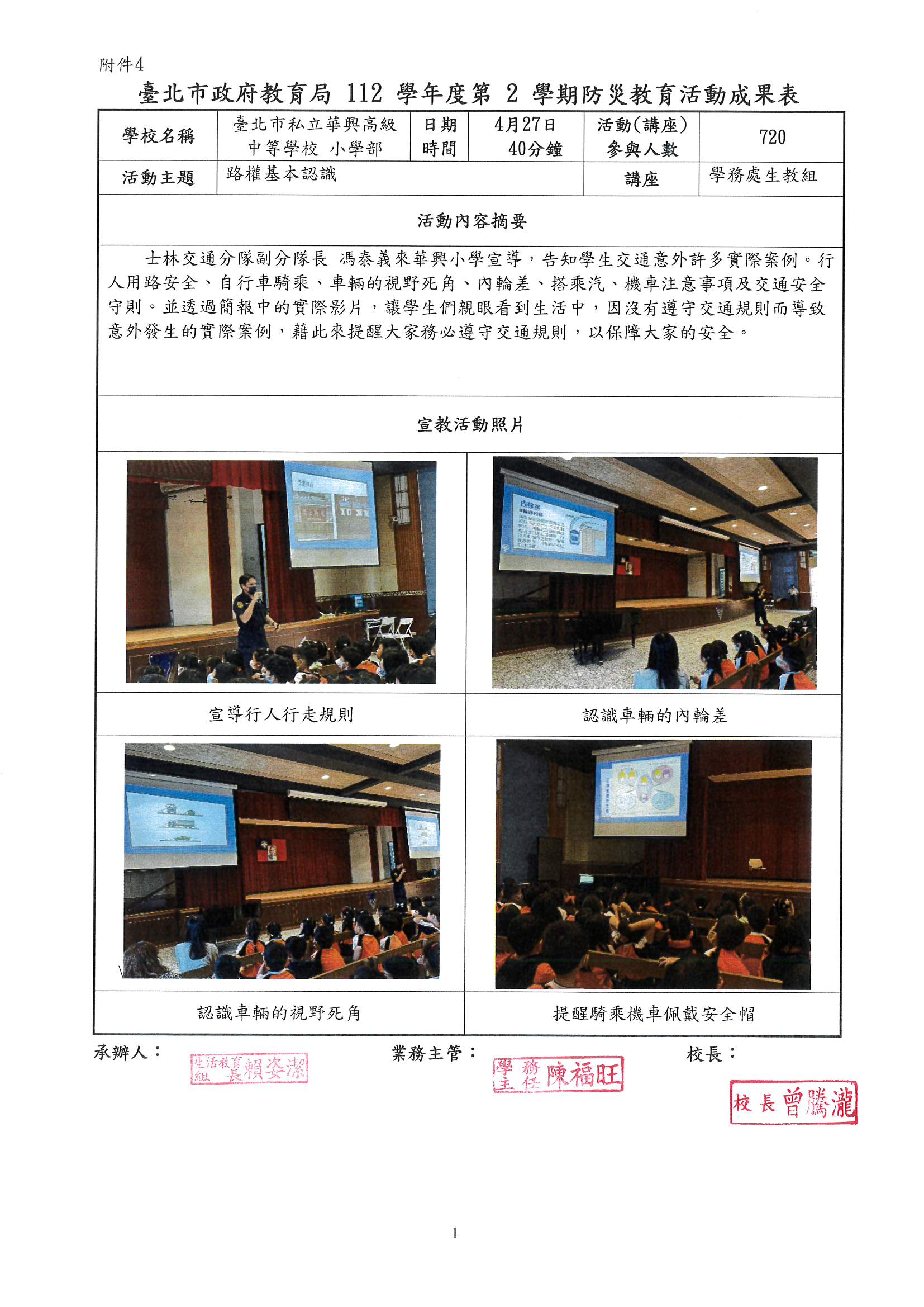 112學年辦理防災教育專題講座 2場,成果如附件。