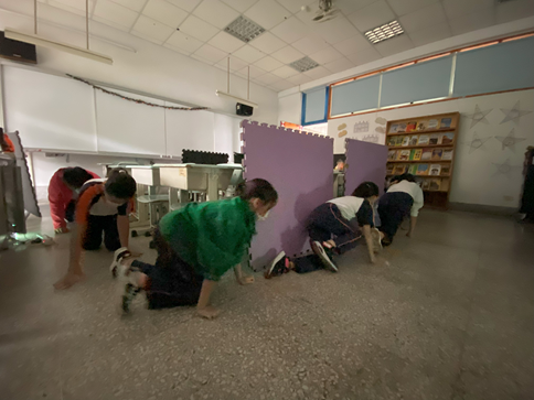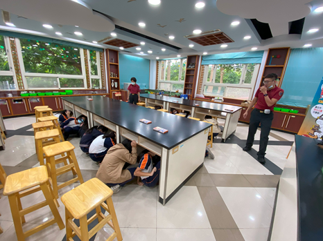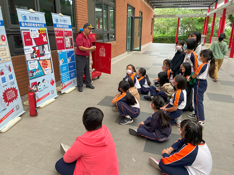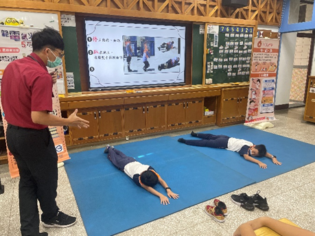 112年10月23、30日 五年級消防體驗日(融入週會課):身上著火時,切記馬上停住,立刻趴下、左右翻滾,可迅速撲滅火勢!消防員哥哥,指導地震避難動作「趴下、掩護、穩住」。認識火場煙霧竄升,必須低姿勢摀住口鼻爬行,才能增加逃生機會。