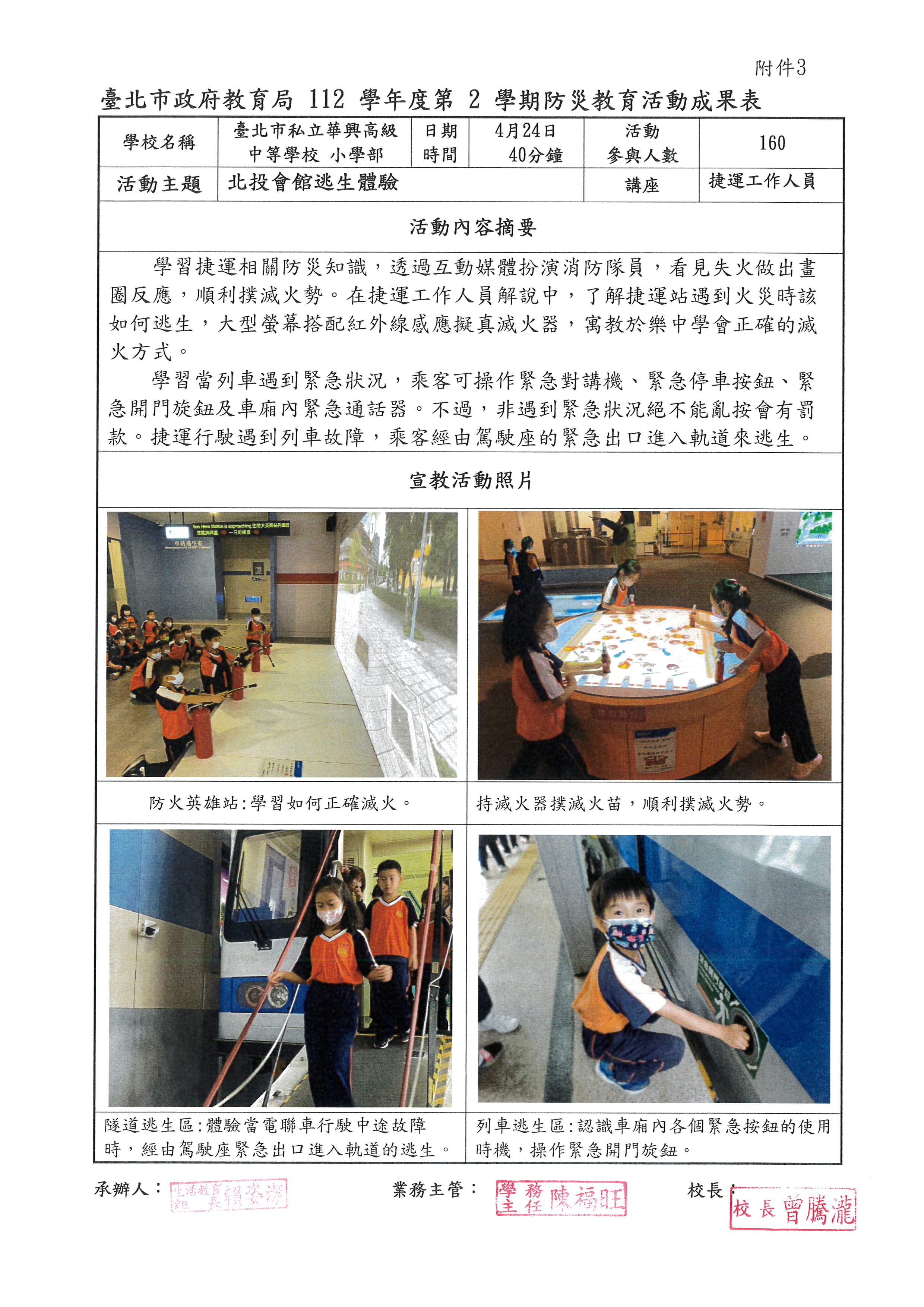 北投會館逃生體驗,成果表如附件。