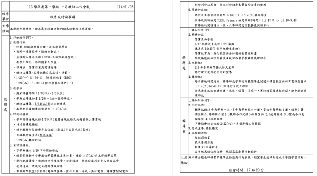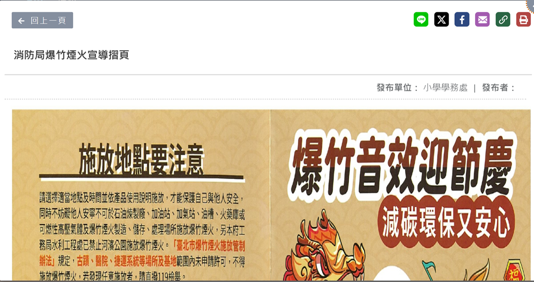 | 學校網站公告爆竹施放注意事項 | 週會宣導爆竹煙火施放注意安全 | 教師工作會報爆竹煙火施放注意事項 |