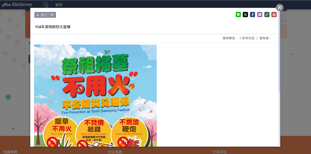 | 校園網站宣導清明節防火 | 教職員宣導清明防火 |