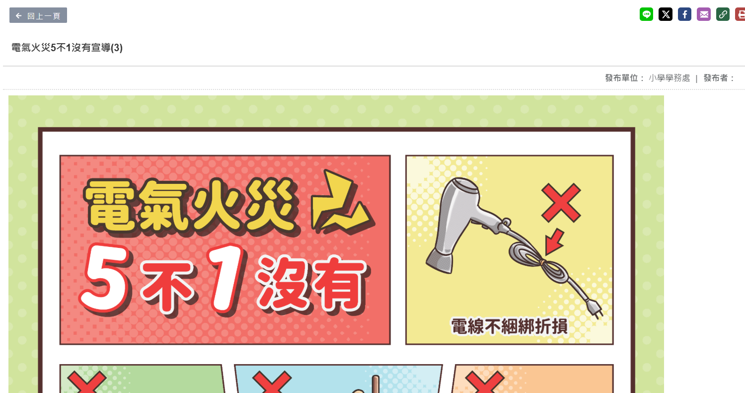 | 校園網站宣導用電安全 | 班會用火用電宣導 | 教職員用電用火安全宣導 |