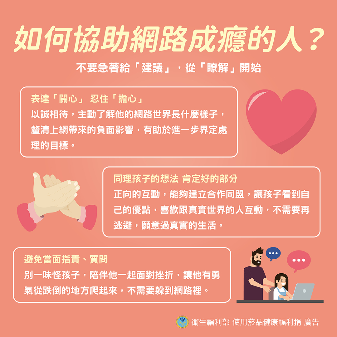 二、為提升青少年成癮防治因應能力,請本市各級學校、教育局及所屬單位協助宣導青少年對網路及酒精成癮的認識,即早建立相關衛教觀念,避免成癮問題孳生。