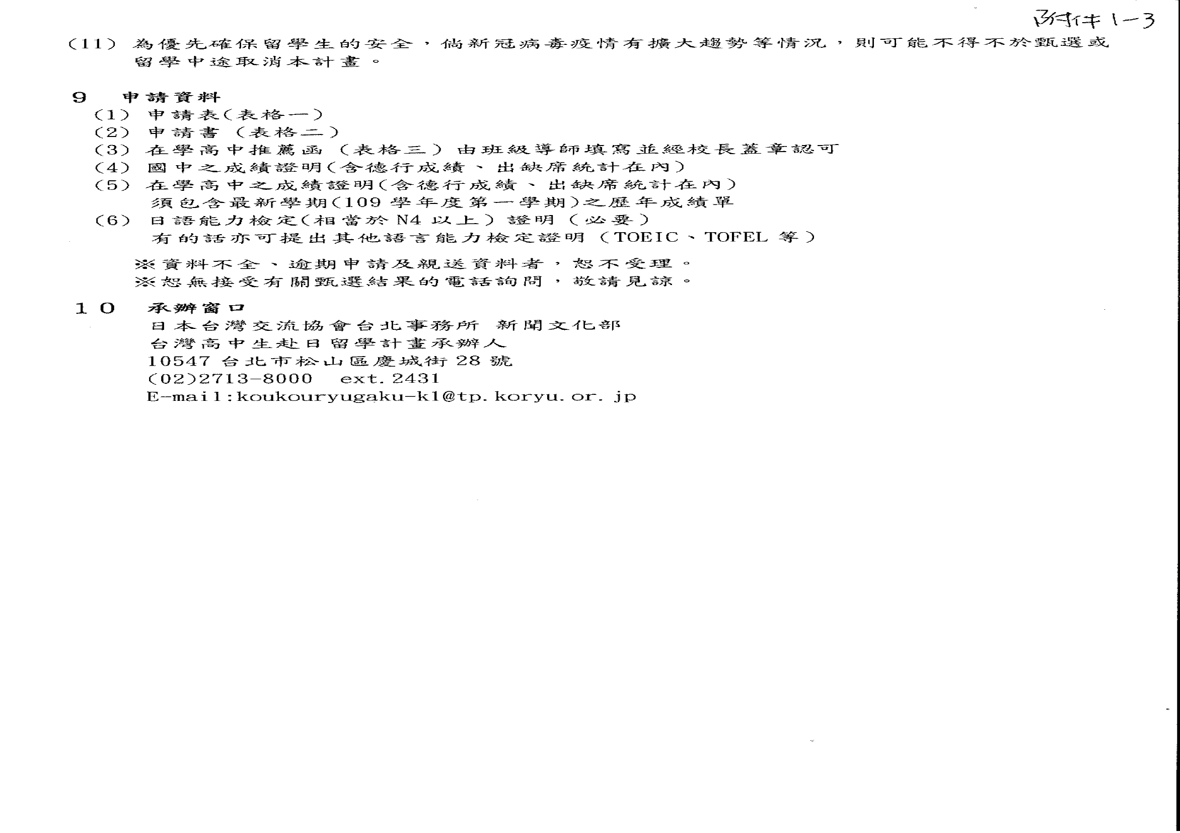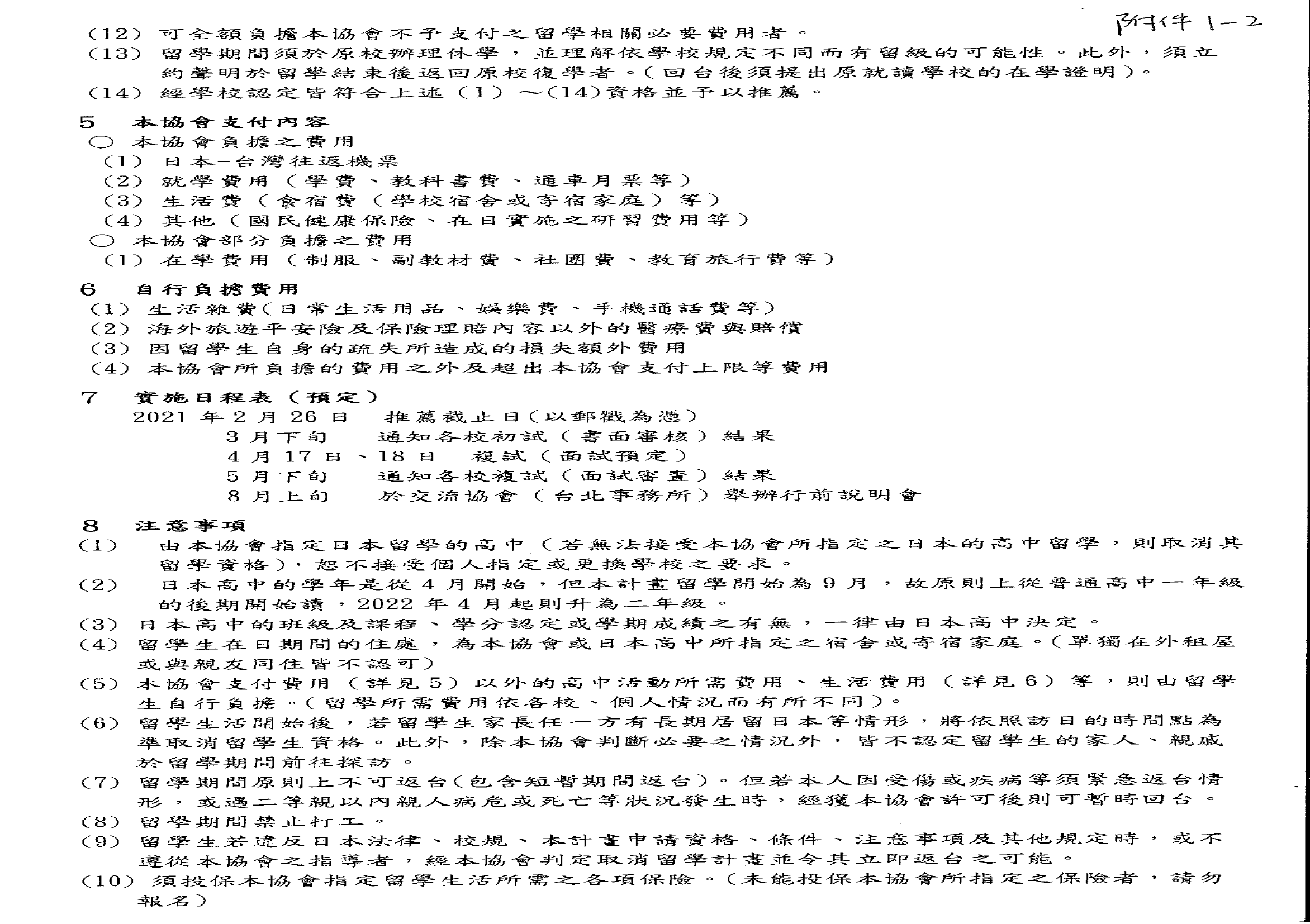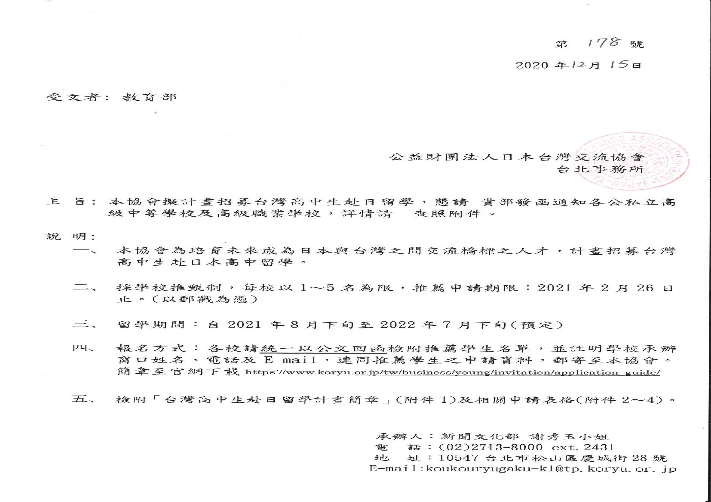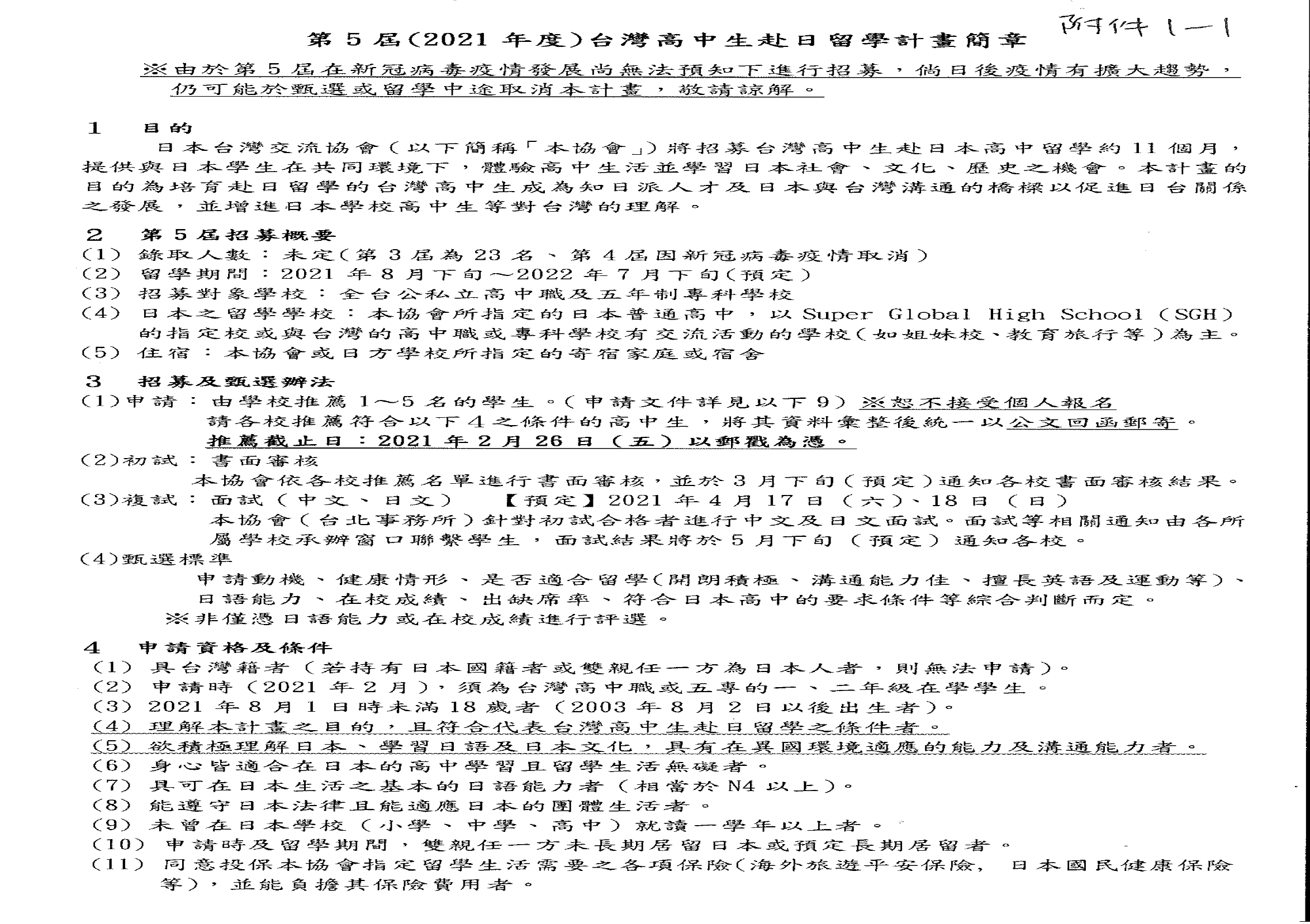 第5屆 (2021年度)臺灣高中生赴日留學計畫