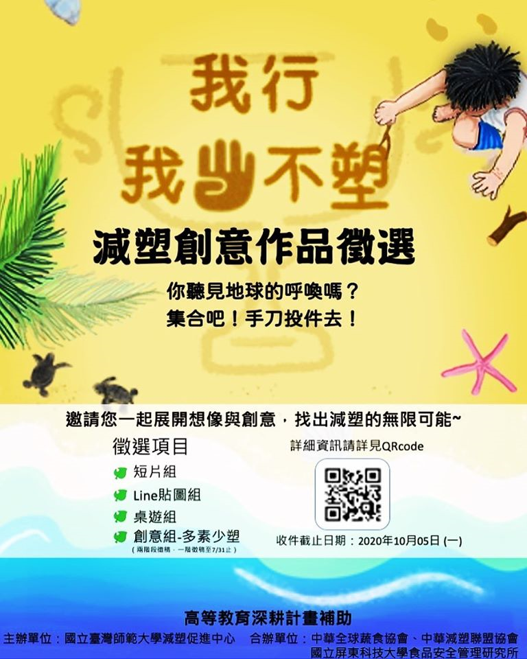 三、本案活動報名日自即日起至109年10月5日止,參賽資格不限,惟作品需符合規格要求,另參賽辦法請參閱簡章。
