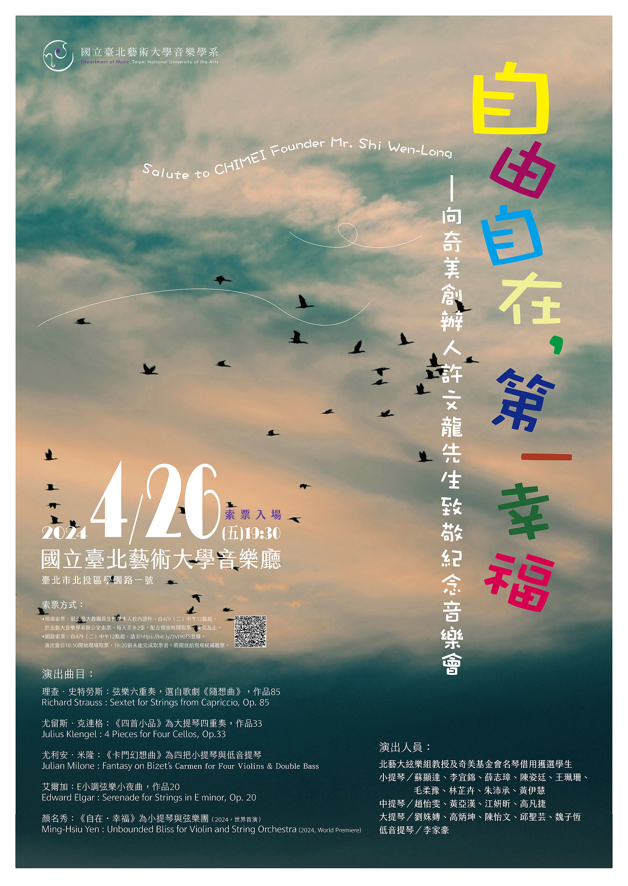 北藝大音樂學系辦理之「自由自在,第一幸福―向奇美創辦人許文龍先生致敬紀念音樂會」