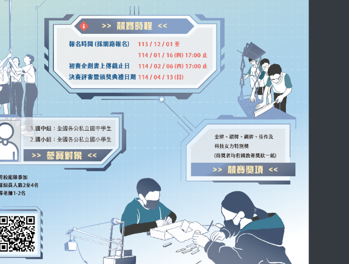 三、相關競賽資訊請參閱網頁(網址:https://tech.k12ea.gov.tw/contest/)